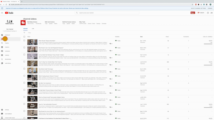 Another way is by pointing viewers to some of your lesser viewed content to give it a boost. You could even go all the way and make a chain of linked videos from the most to least popular content on your channel. Do this by opening up the video page in your creator studio and clicking ‘Views’.